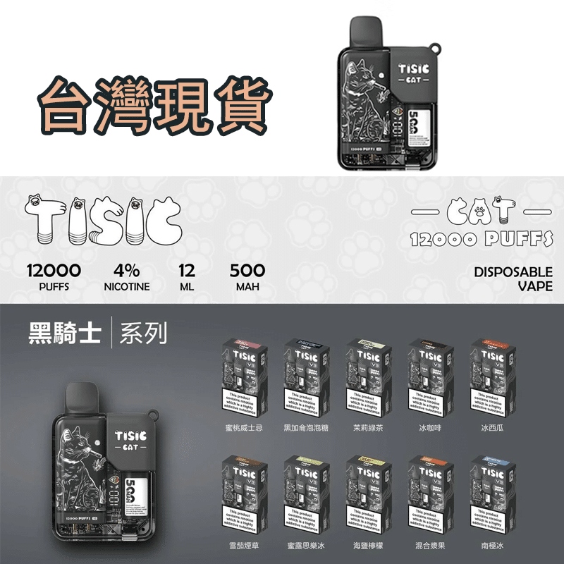 TISIC貓咪拋棄式12000口一次性電子煙——黑騎士系列